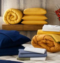 اطلب جميع المنتجات التي تحتاجها دفعة واحدة: شراشف سرير عالية الجودة، مناشف، مفارش طاولات، وغير ذلك.